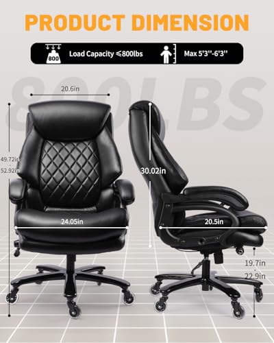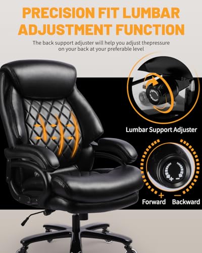 800lbs Big and Tall Office Chair, Computer Chair for Heavy People, Executive Chair with Adjustable Lumbar Support, Executive Desk Chairs with Quiet Rubber Wheel and Extra Wide seat