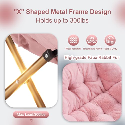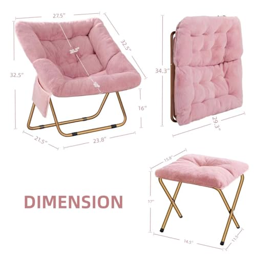 Comfy Saucer Chair, Foldable Living Room Chairs, Soft Faux Fur Lounge Chair for Bedroom, Reading Chairs for Adults, Teens, X-Large (Pink)
