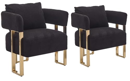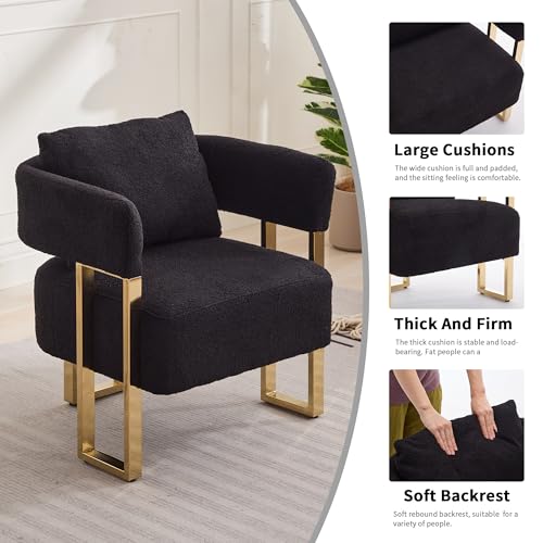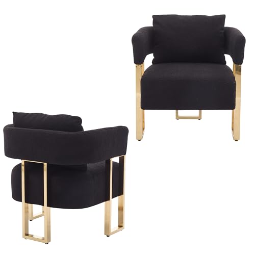 YISHENG Modern Barrel Accent Chairs Set of 2, Living Room Side Chairs with Golden Metal Legs Soft TeddyUpholstered Reading Armchairs no Wheels for Vanity/Reception Room//Bedroom/Lounge/Office,Black