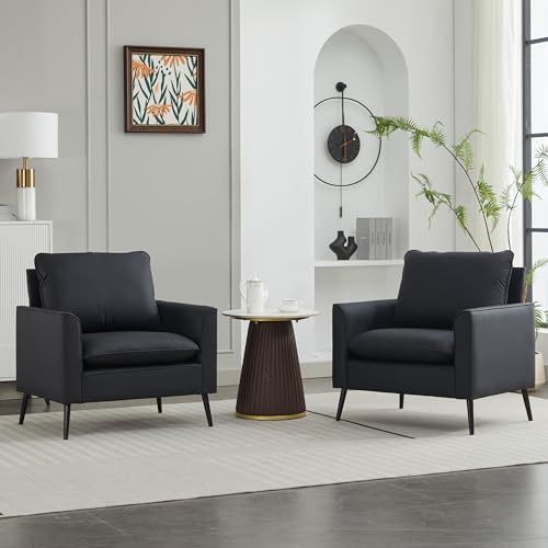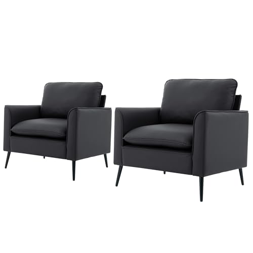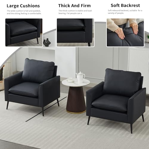 YITAI Modern Accent Living Room Chairs, Leather Oversized Single Sofa Chair with Metal Legs, Mid Century Comfy Armchair for Bedroom/Office Reading/Lounge/Office/Reception,Set of 2,Black