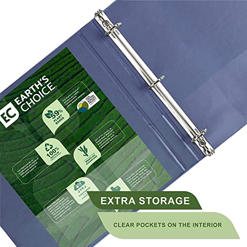 “Our three ring binders make indispensable home, office, and school supplies. While there are many binders available, only our plant-based 3 ring binder set offers the sustainable organization you’ve been searching for. These binders are made of at least 59% biobased material and come with a cover made with up to 25% plant-based renewable plastic. The durable chipboard is made from 100% recycled material and a minimum of 98% post-consumer content. Plant-based content is carefully tested using ASTM D-6866 standards. Each important document binder features a clear overlay along the front, back, and spine, allowing you to customize your presentations, projects, and more. A non-stick polypropylene cover adds durability and effectively prevents the transfer of ink or lifting of copy when materials are inserted into the cover or placed inside. The rings are mounted on the back lid, allowing pages to lay flat while also preventing wear and tear on documents. 2 clear interior pockets provide additional storage with enough space for notes, photos, business cards, or full-size pages. Get crafty and create a baseball card binder, portfolio binder, recipe binder, trading card binder, savings binder, etc. The possibilities are endless! “