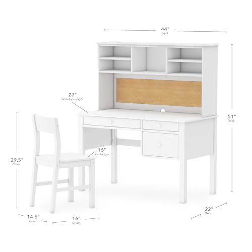 Guidecraft Madison Kids Desk and Chair Set with Hutch – White: Wooden Table with Storage Shelves, Drawers, Corkboard | Children’s Workstation, Computer Table and Chair Set for Kids Bedroom Furniture