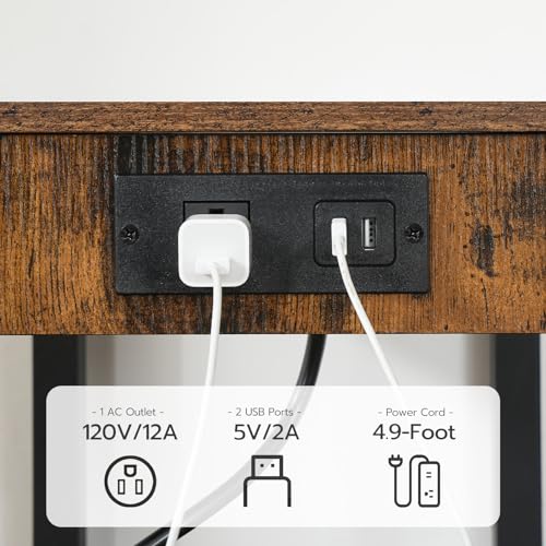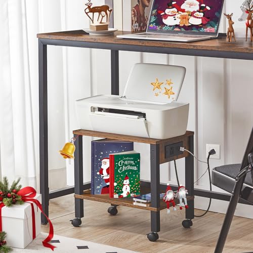 HOOBRO 2-Tier Printer Stand with Charging Station, Under Desk Printer Table, Printer Cart with Storage Shelves, Shelf for Small Spaces, for Home Office, Rustic Brown and Black BF38UPS01