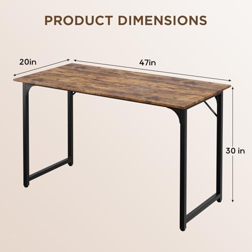 PayLessHere | 47 Inch Computer Desk | Brown | Office Desk with Metal Frame, Adjustable Feet | Water-Resistant, Scratchproof Surface | Sturdy Writing Table for Home Office or Study | Pack of 1